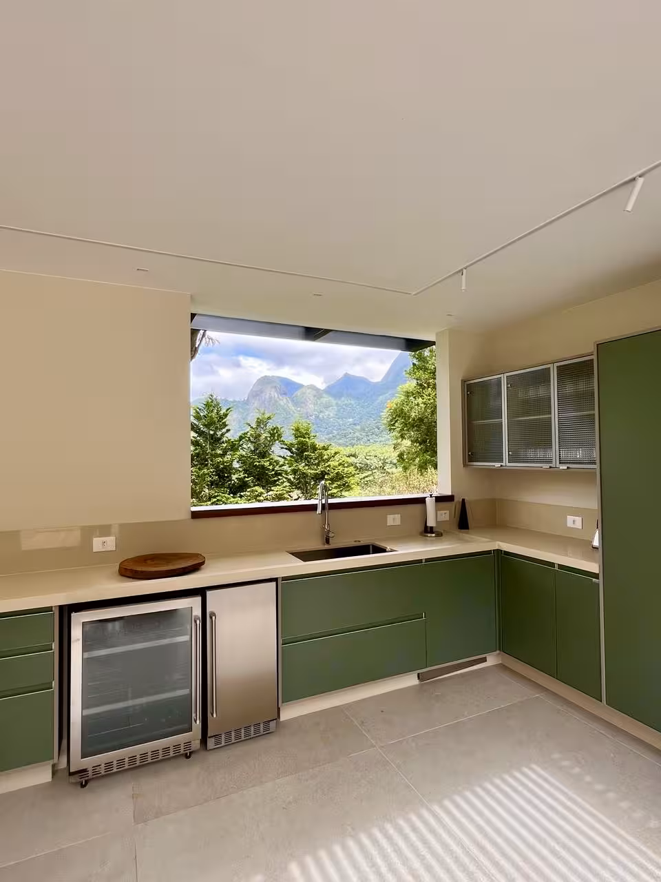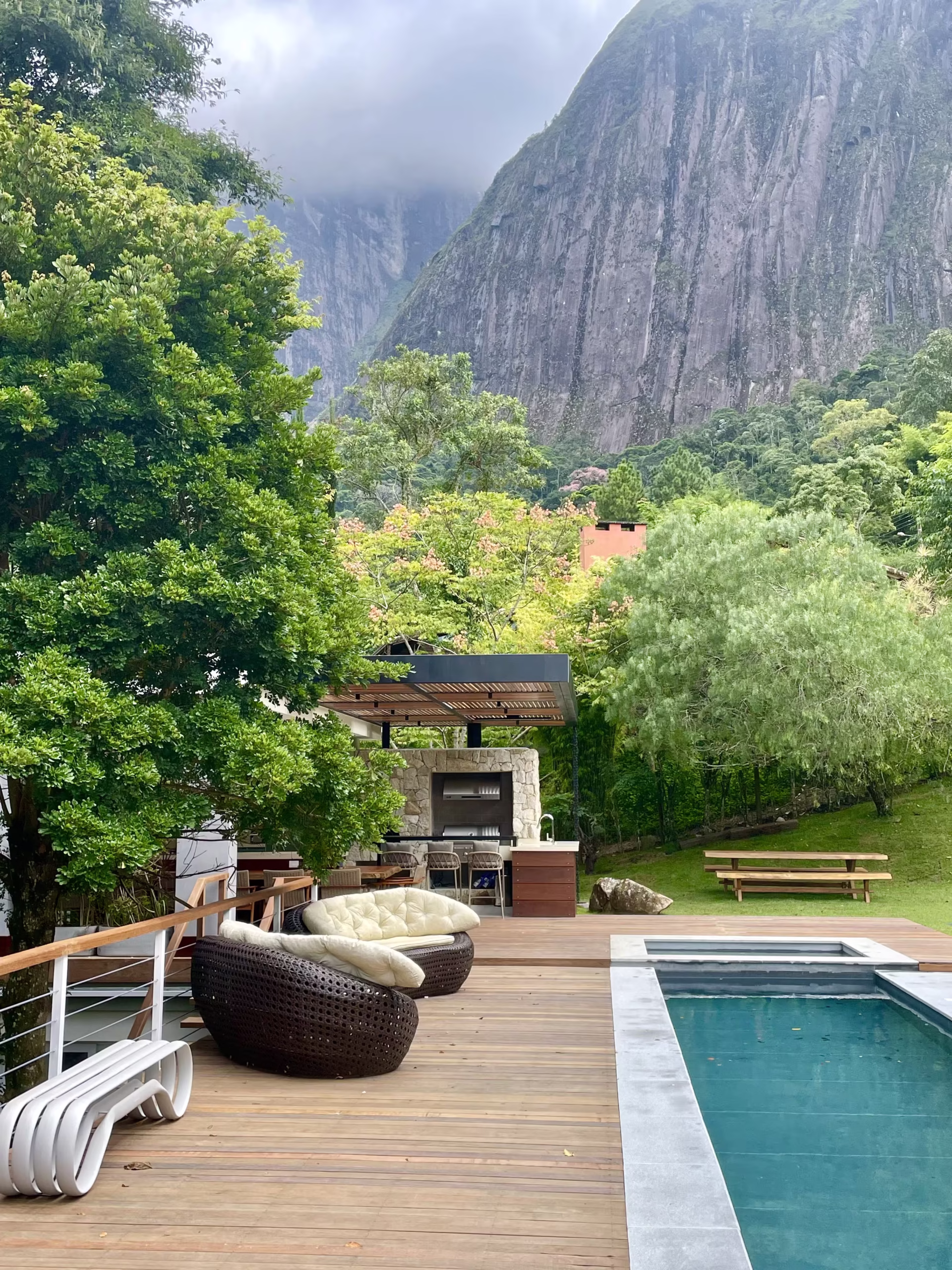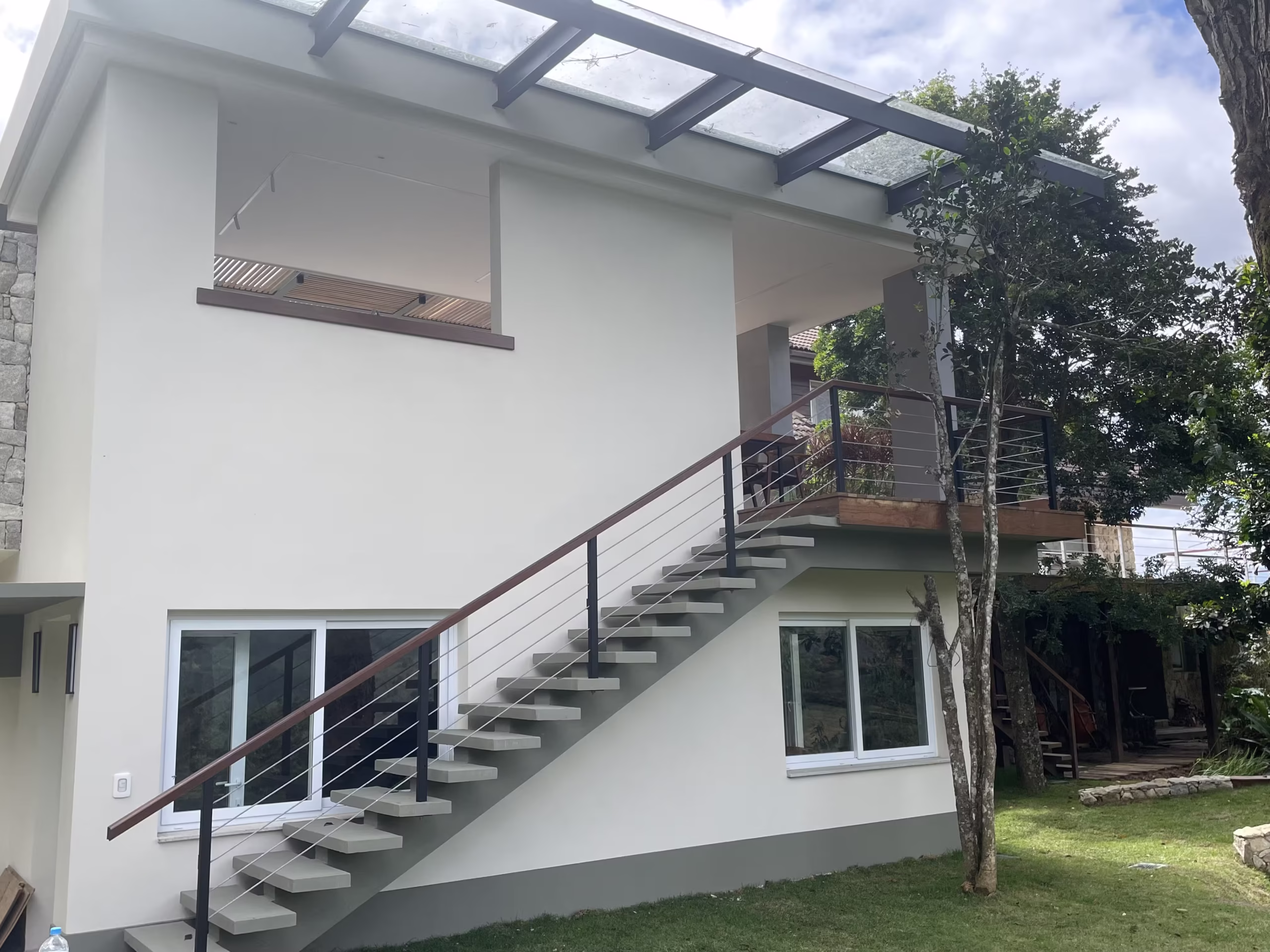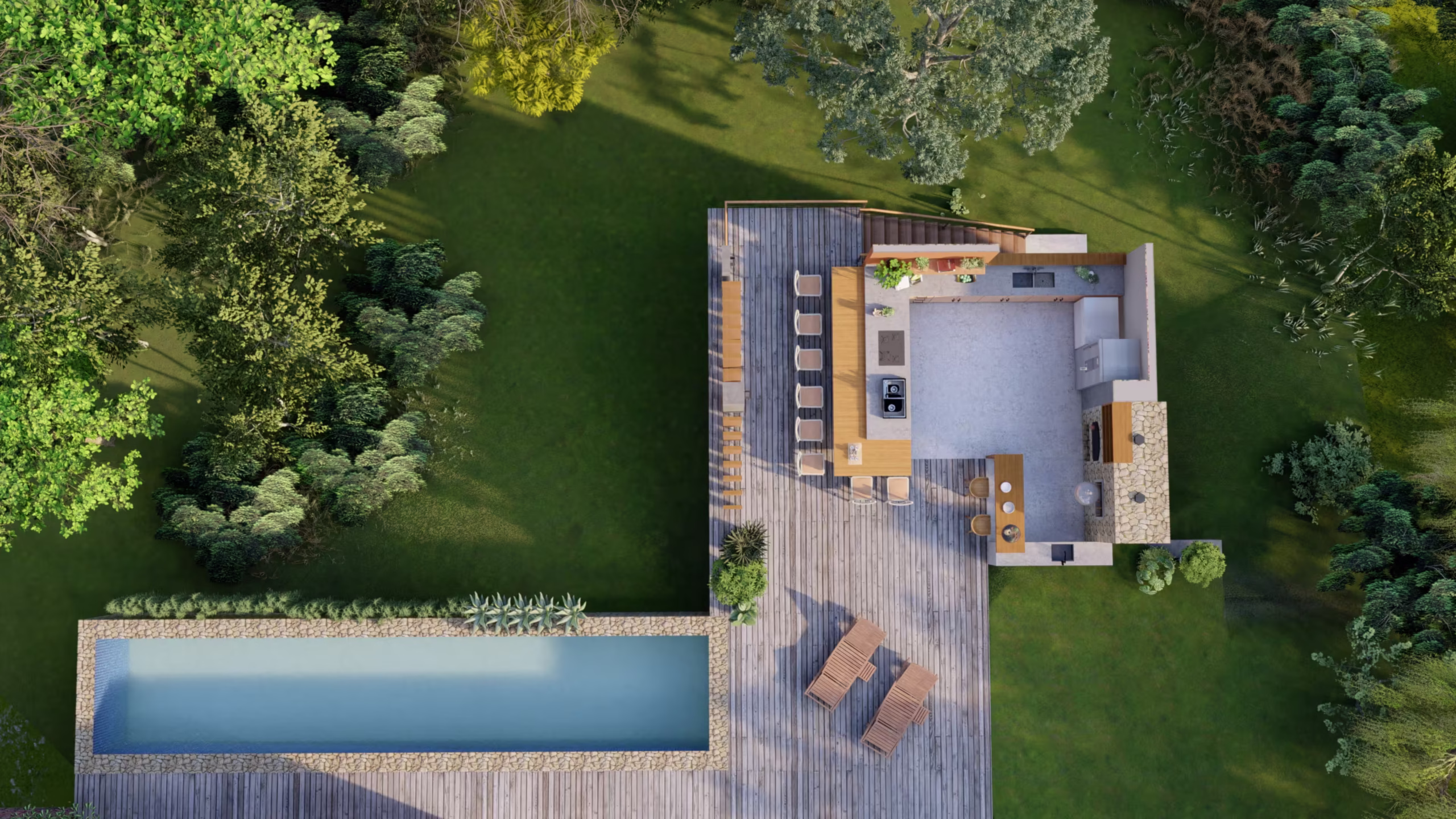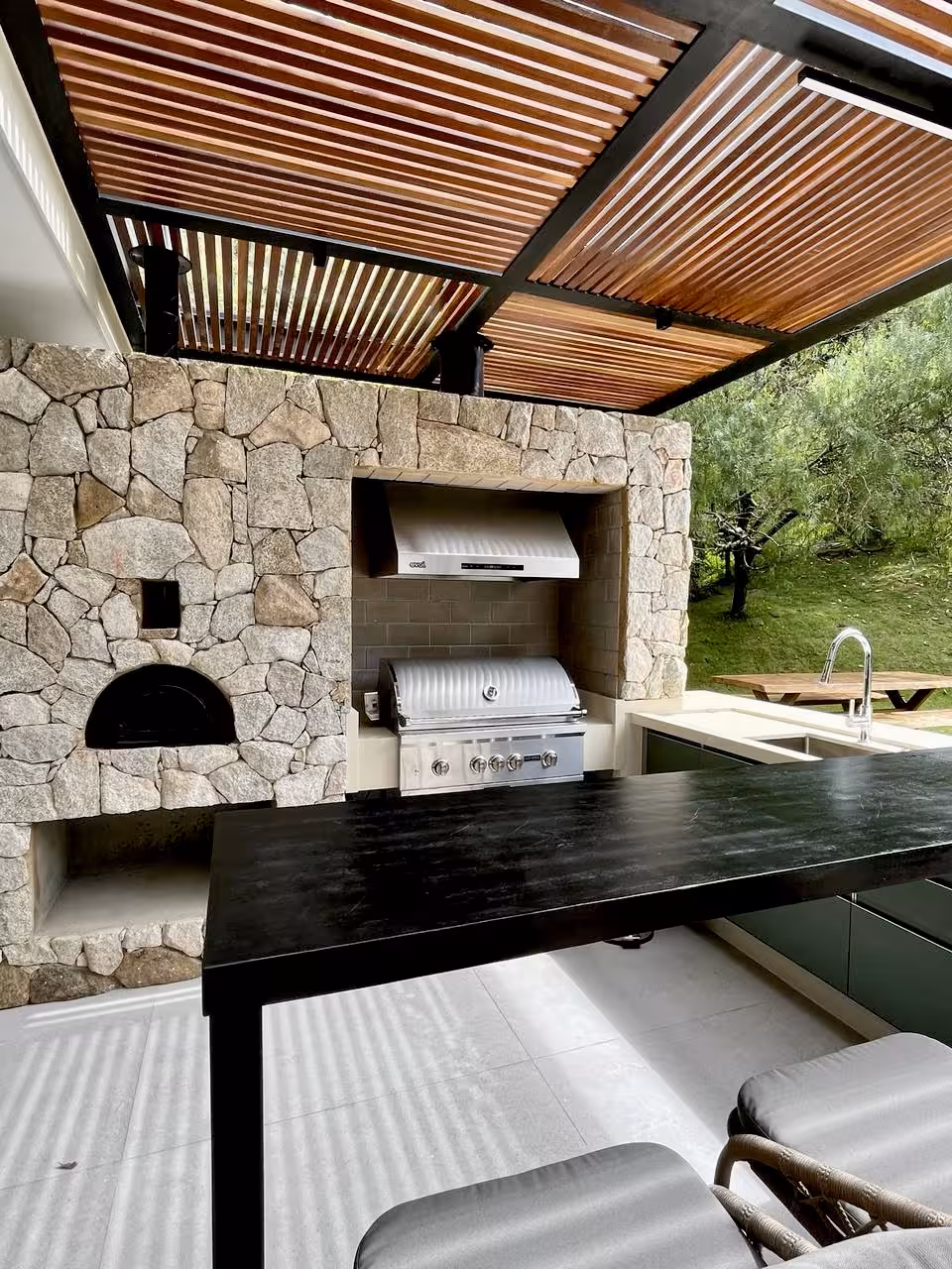 O projeto dessa área de lazer proporcionou um espaço de convivência para a família. Sugerimos a troca do revestimento da antiga piscina e ampliação de deck e na sequencia construímos um SPA aquecido. A construção do salão jogos no andar inferior com a instalação de esquadrias com isolamento acústico permitiu a separação dos espaços e a privacidade em usos simultâneos.